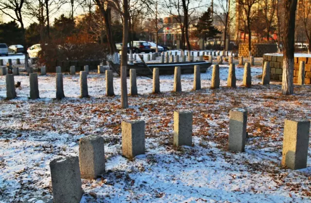 校门处的铺地名为“老根驿站”,由我校和英国哈斯菲尔德大学学生共同设计,由马路边石、铁道枕木、木层、老树根组成。旧马路边石有15000余条,头尾相连达15公里。这里既有东北大马路的影子,青年大街的昔日,又有火车轰鸣的铿锵。