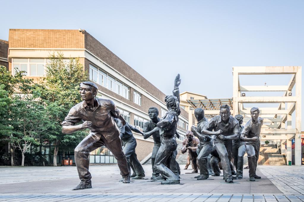 如今铁石广场的铁人们每天都能看到建大学子的青春活力,看到我们丰富多彩的校园文化生活,他们会默默陪伴着学生茁壮成长。