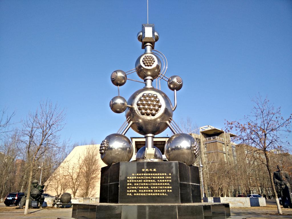 三座巨大雕塑犹如三把标尺,与广场中央的世纪之星雕塑共同激励学生不断创新,不断探索。