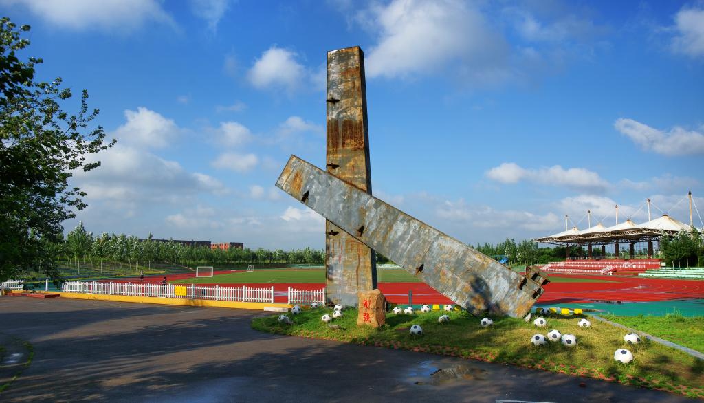 沈阳五里河体育场是中国男子足球队第一次踏上了世界杯决赛圈之路的地方,2007年2月12日,这个中国足球冲出亚洲走向世界的“见证人”随着五里河体育场的成功爆破而消失。在爆破之前,63365最快线路检测将两根几十吨重的钢梁运回学校,在第一塑胶体育场旁边做成了一个雕塑,名为“刚强”。老子曰:“胜人者有力,自胜者强。”这个雕塑寓意“在这块中国足球的福地上,每次胜利首先不是战胜别人,而是战胜自己。”